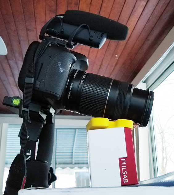 So, it's held in position with a bunch of random objects held in place by a stack of boxes next to the tripod.