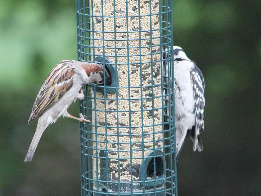 Hurling unwanted seeds to the ground, as efficiently as the house sparrows