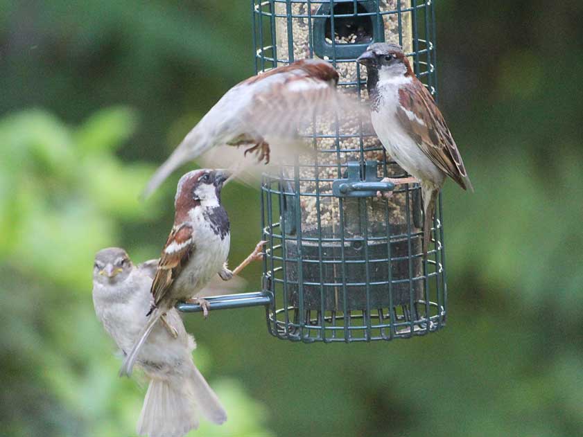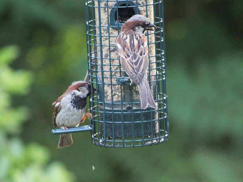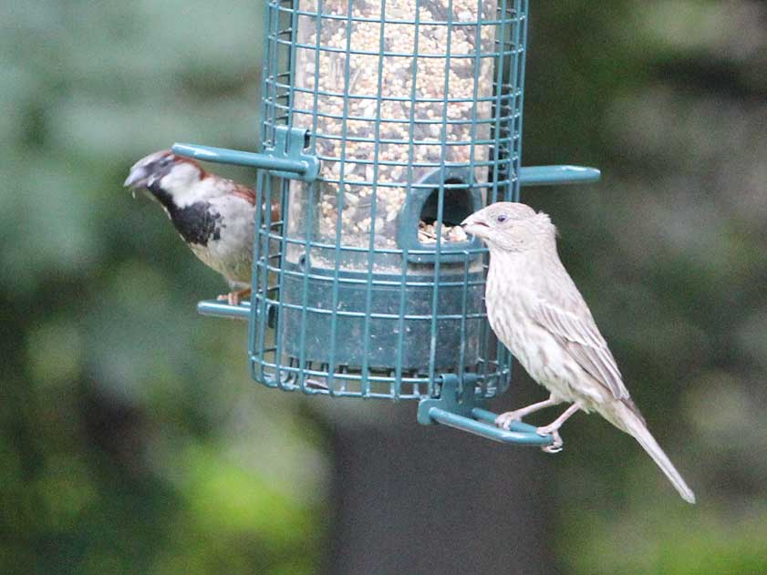After months of birdwatching, a cool discovery. The slender house sparrow on the right isn't actually a house sparrow.
