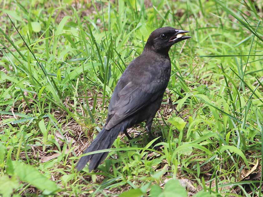 Next day, 22 June 2014. A grackle grabs a piece of corn.