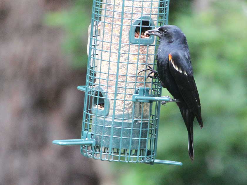 Becoming a familiar sight: a redwinged blackbird. If the wing stripe is completely white, the bird is in its first year.