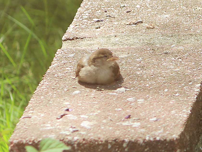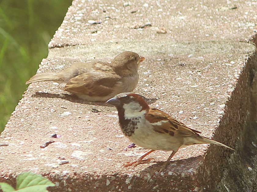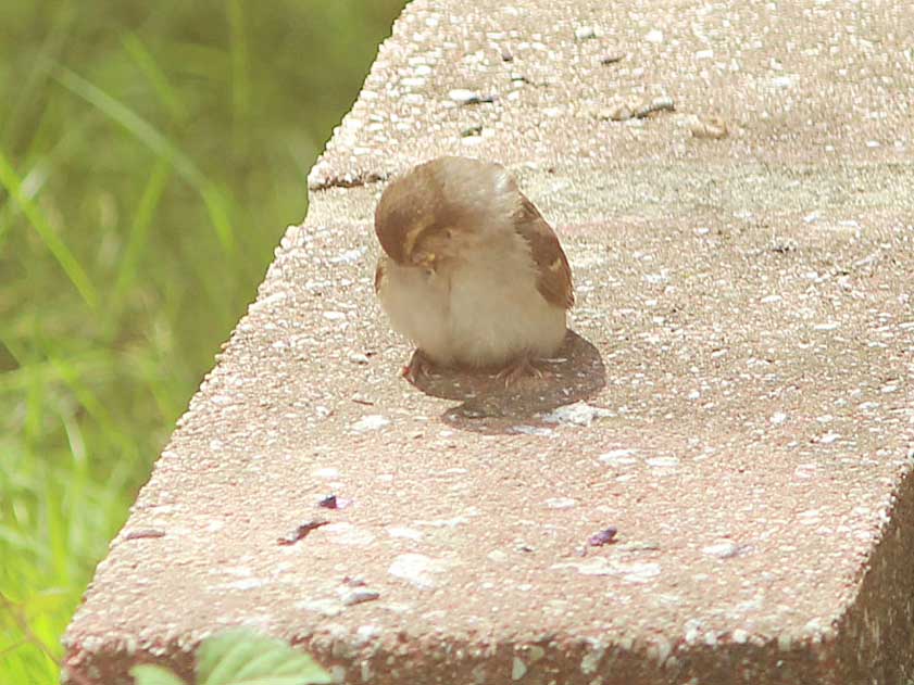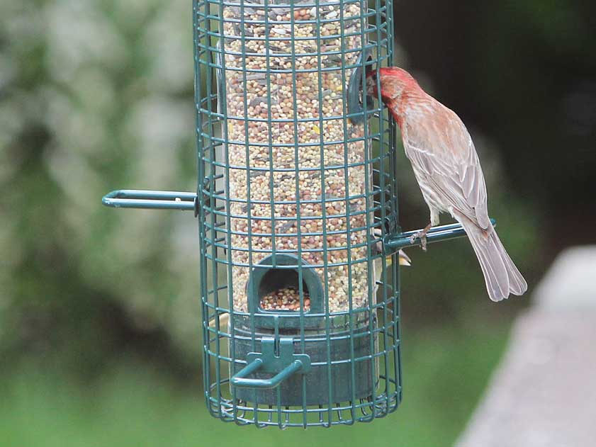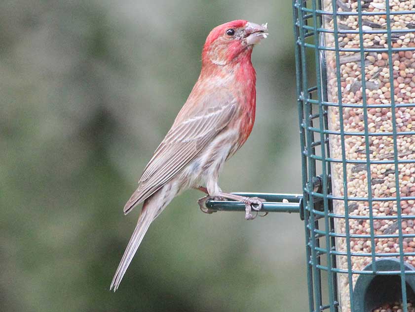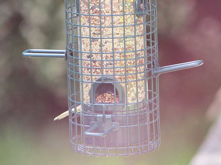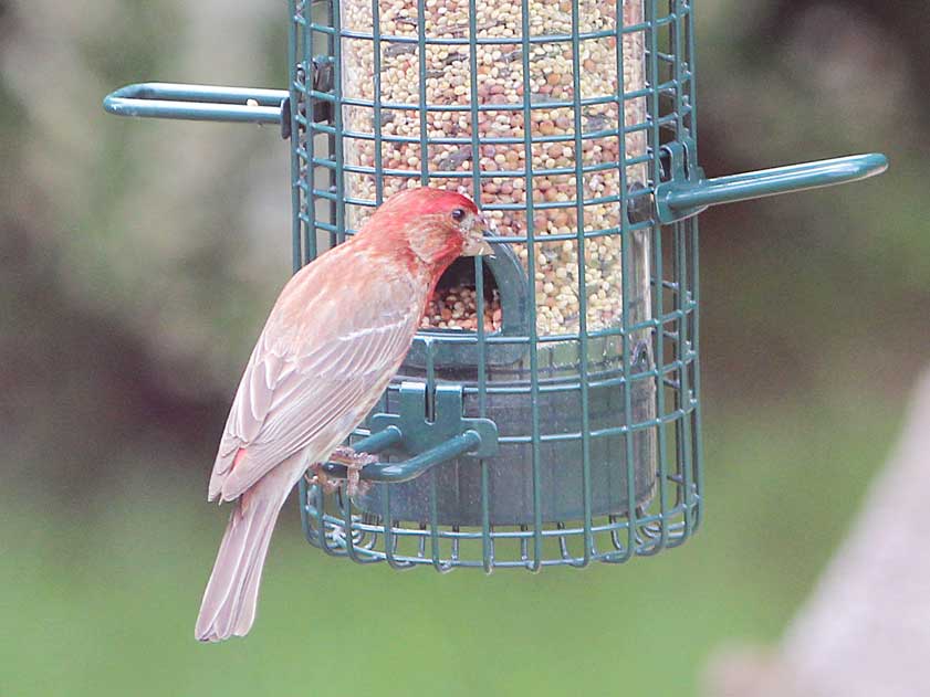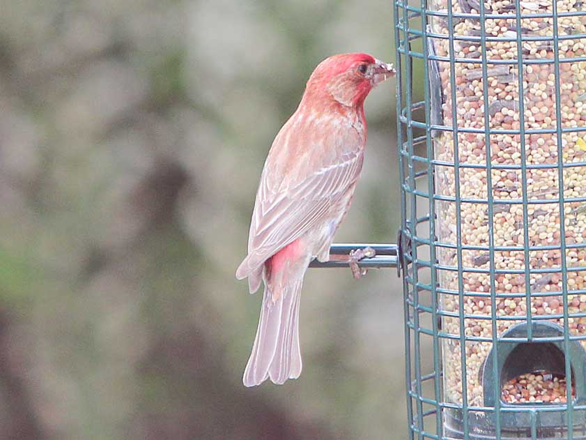 Unlike the house sparrows, the chickadee extracts one seed and then flies away. Then he comes back a few minutes