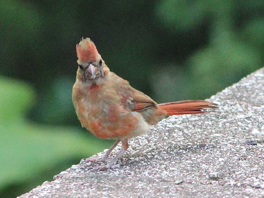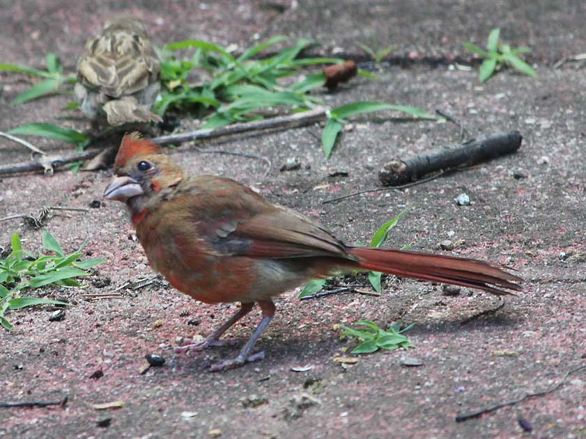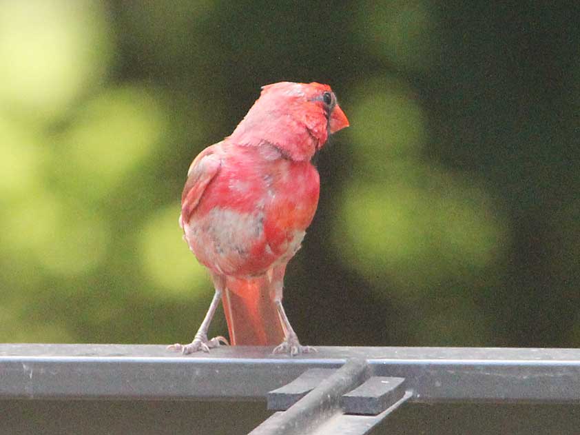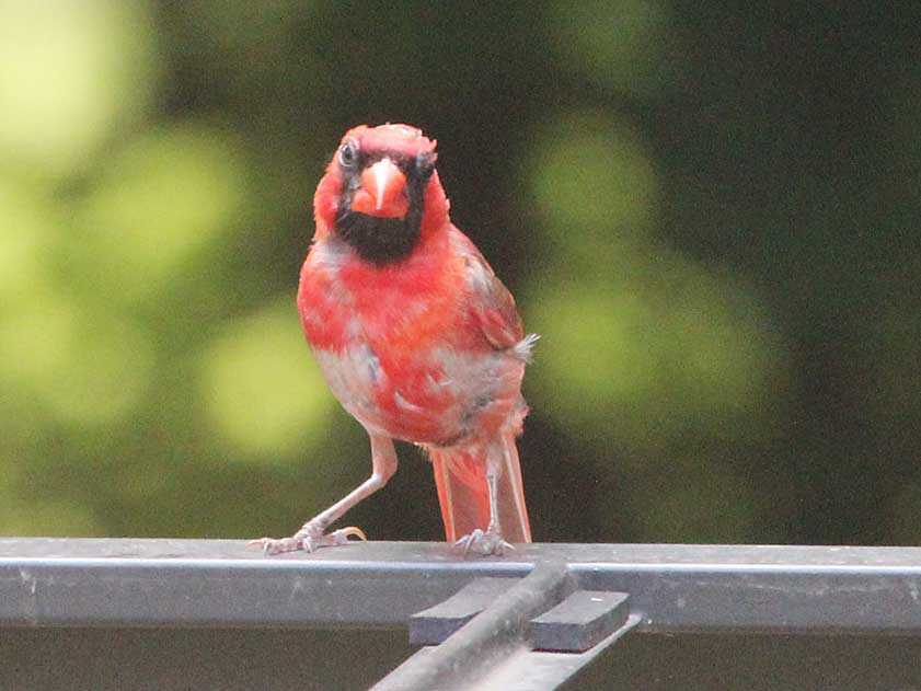 On Monday, 30 June a suet feeder was put out. It's supposed to attract cardinals and woodpeckers. To our delight,