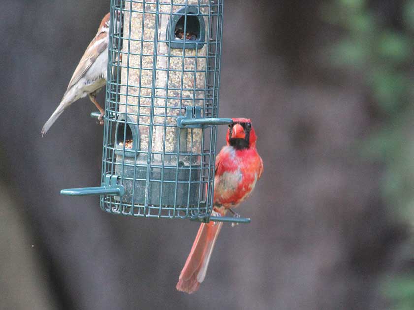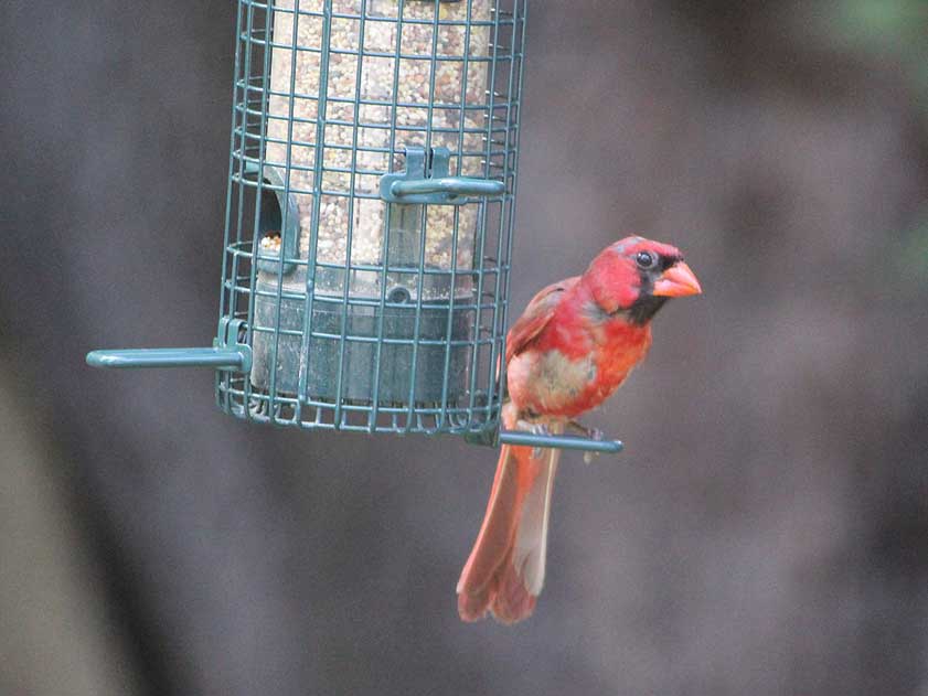 And then, after nearly three months, it finally happens. The male northern cardinal tries out the feeder.