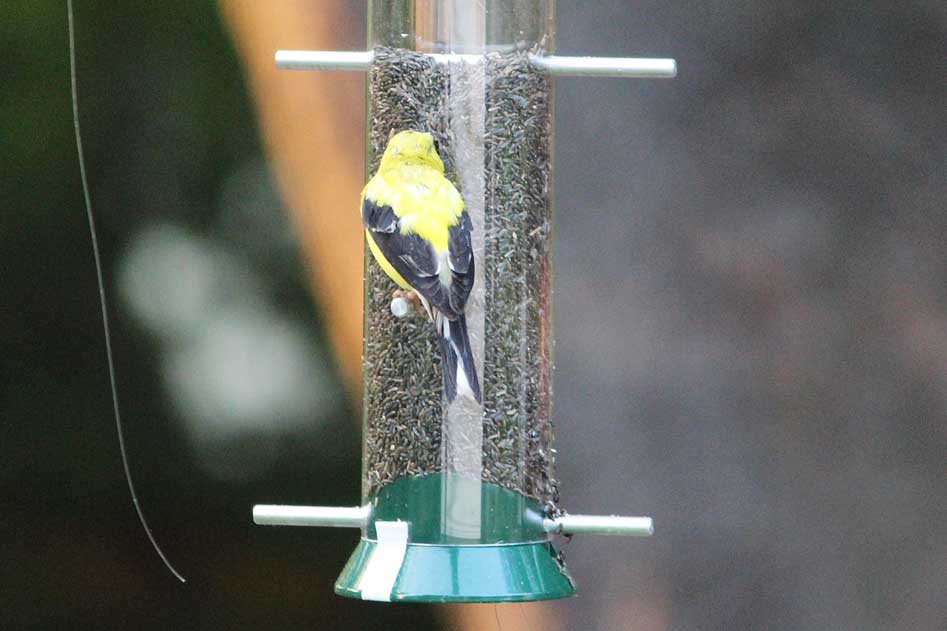 Meanwhile, another father is forced to eat at the birdfeeder: Mr. Cardinal.