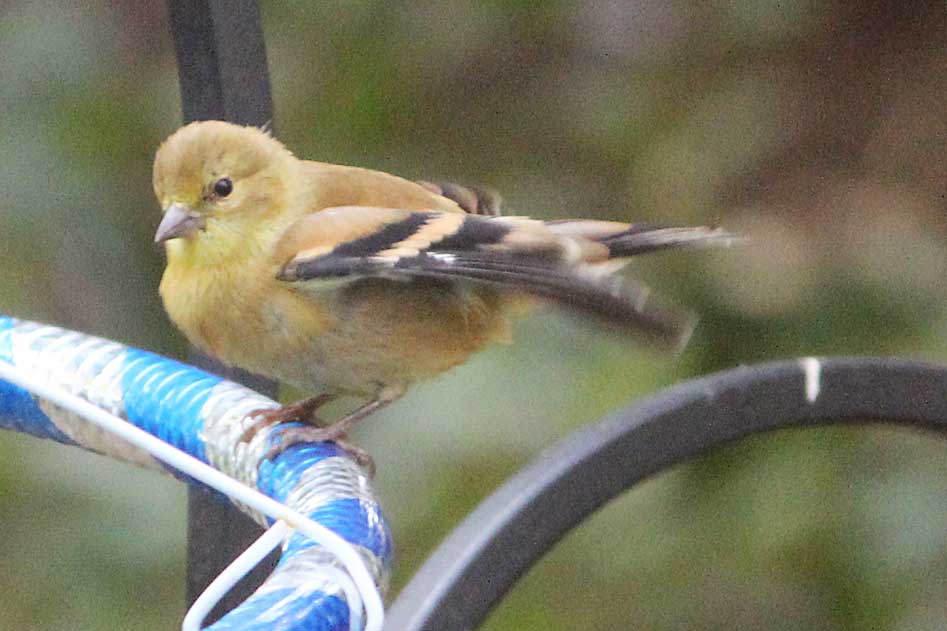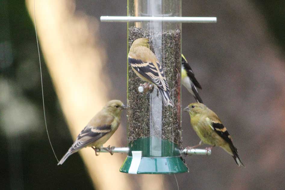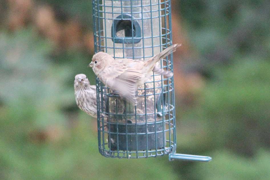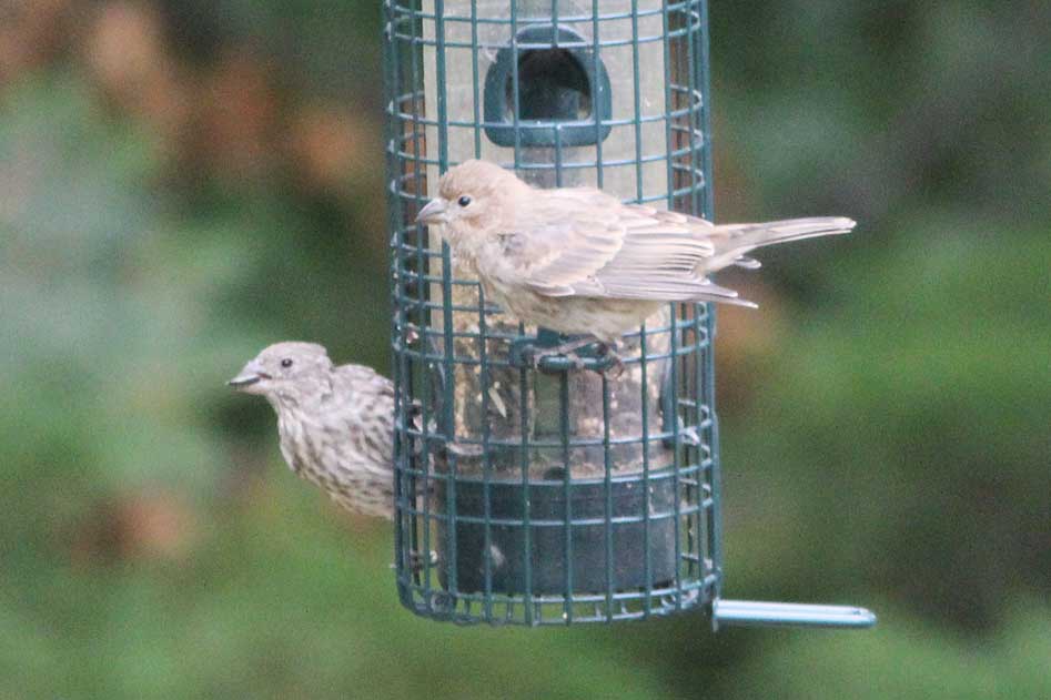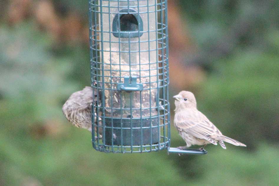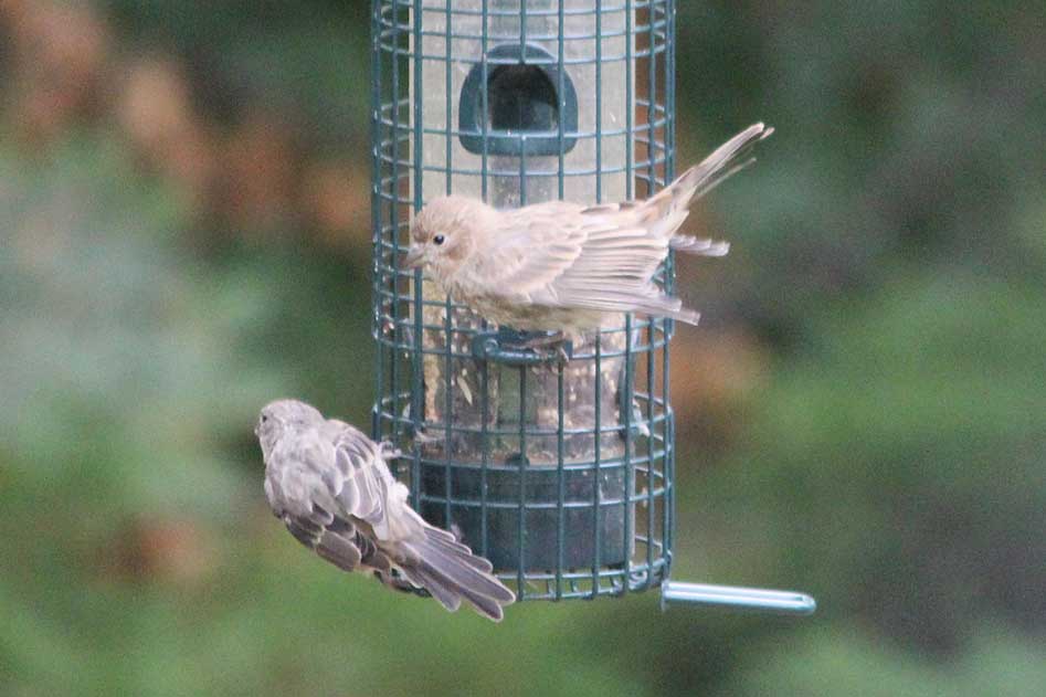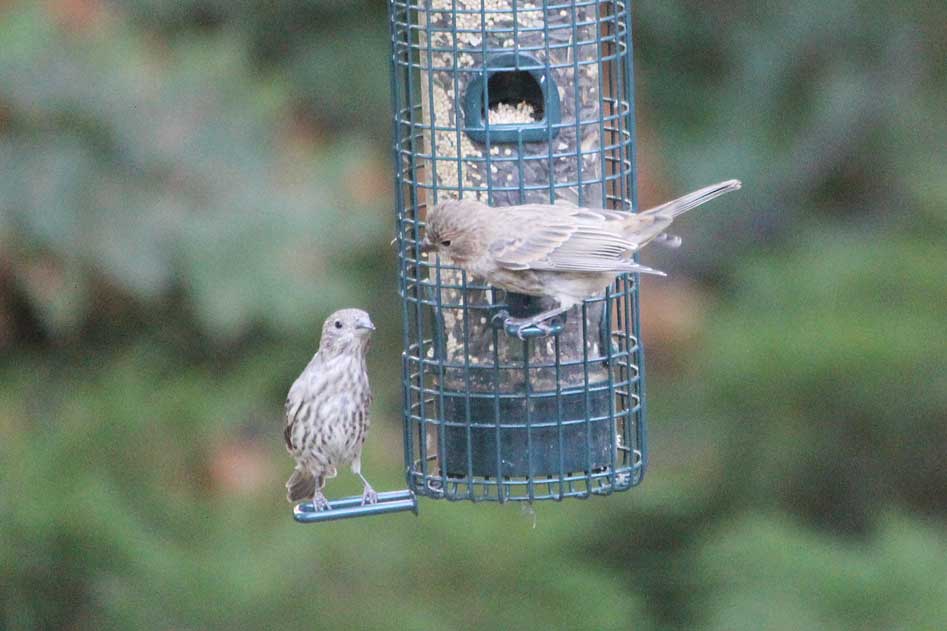 But mother house finch just shows junior how it's done. "You've got to learn how to fend for yourself, my child."