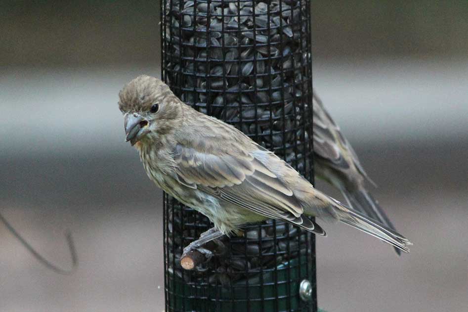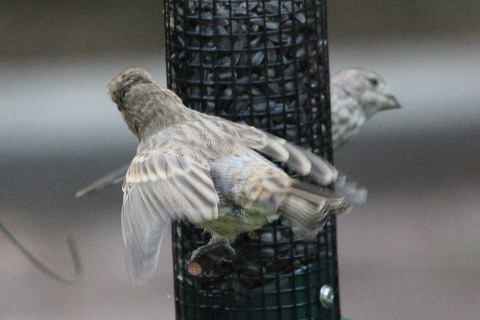 A juvenile house finch tries yet again to get the attention of an adult. No dice.