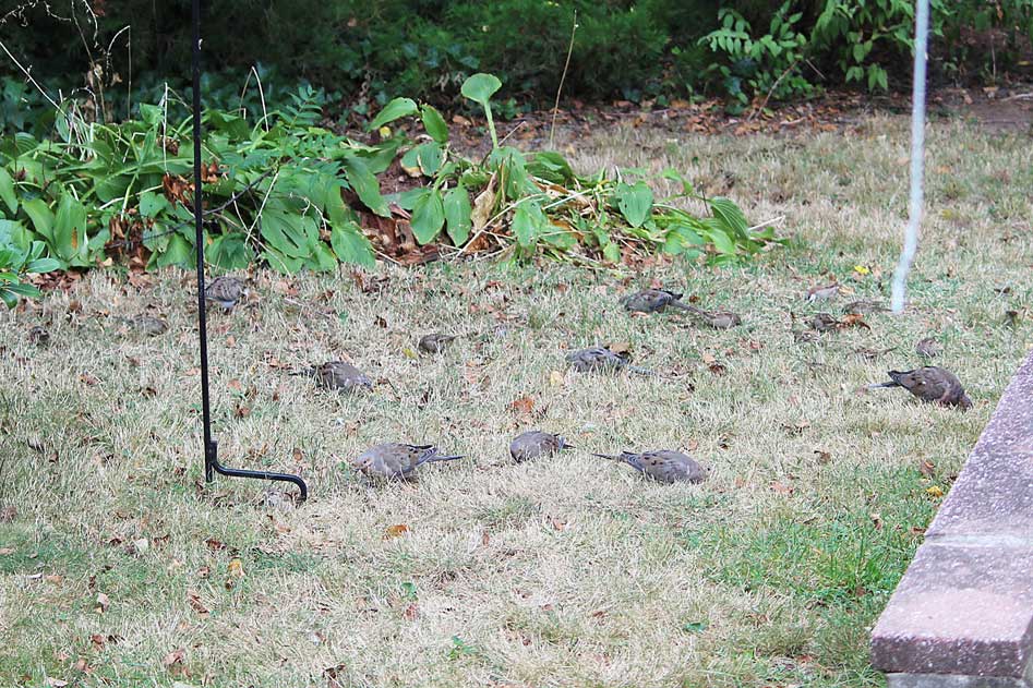 This evening it's the mourning doves turn to invite every mourning dove in the neighbourhood.