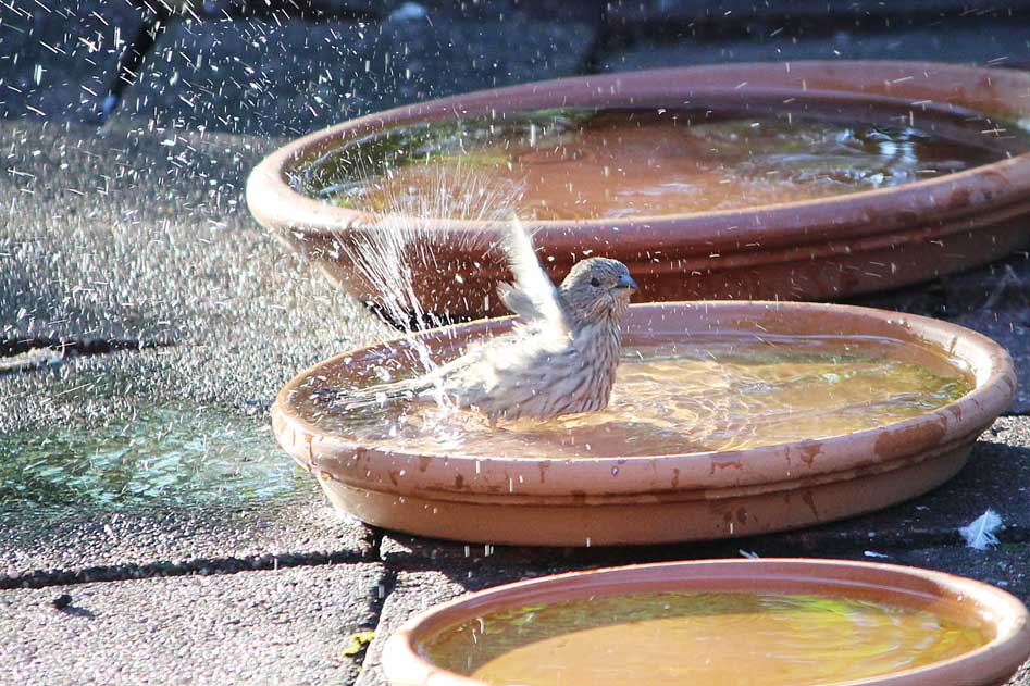 A house finch and the simple pleasure of a bath.