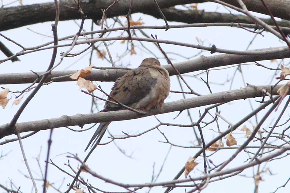 19 December 2014: Withstanding cold winds: a fluffed-up mourning dove