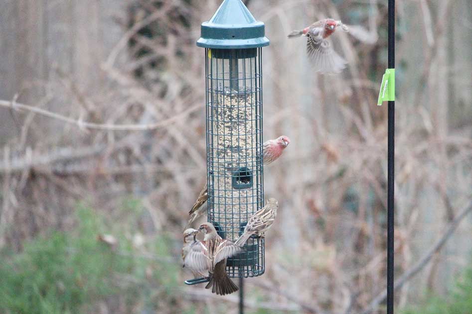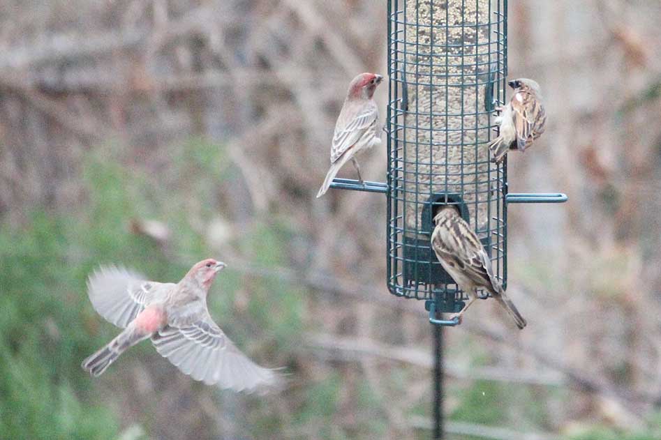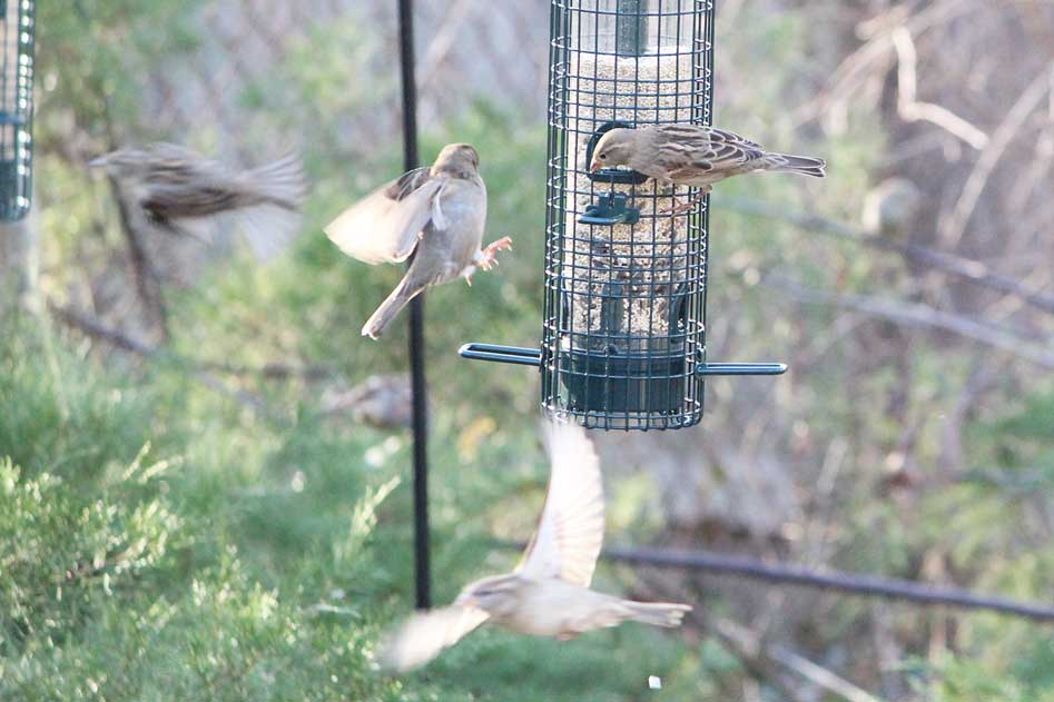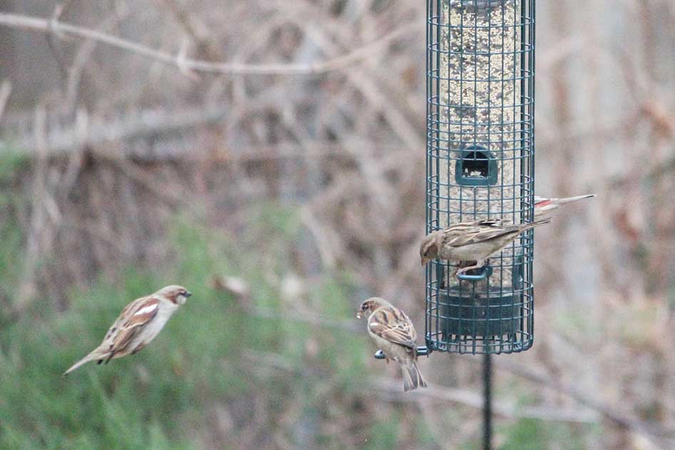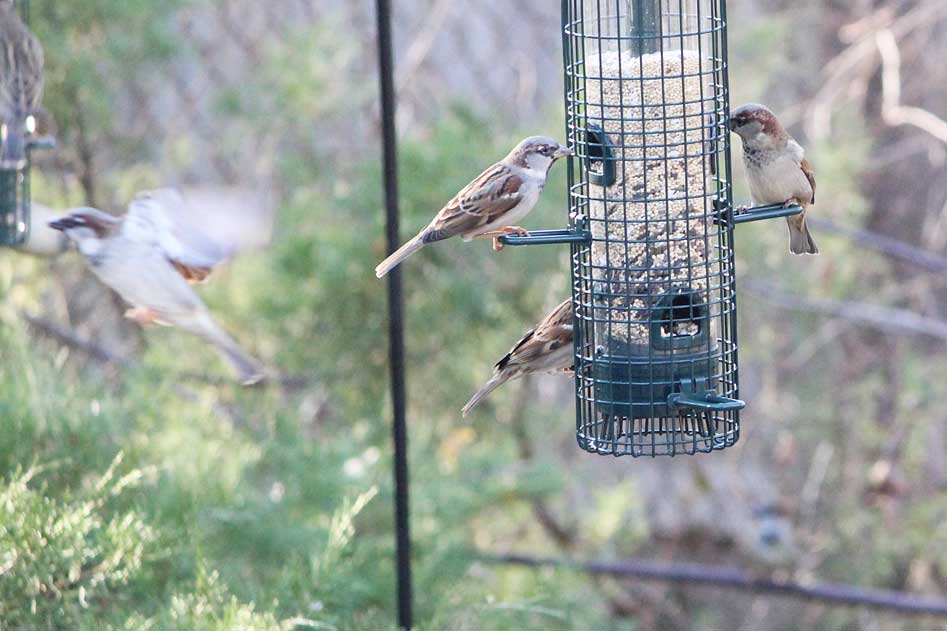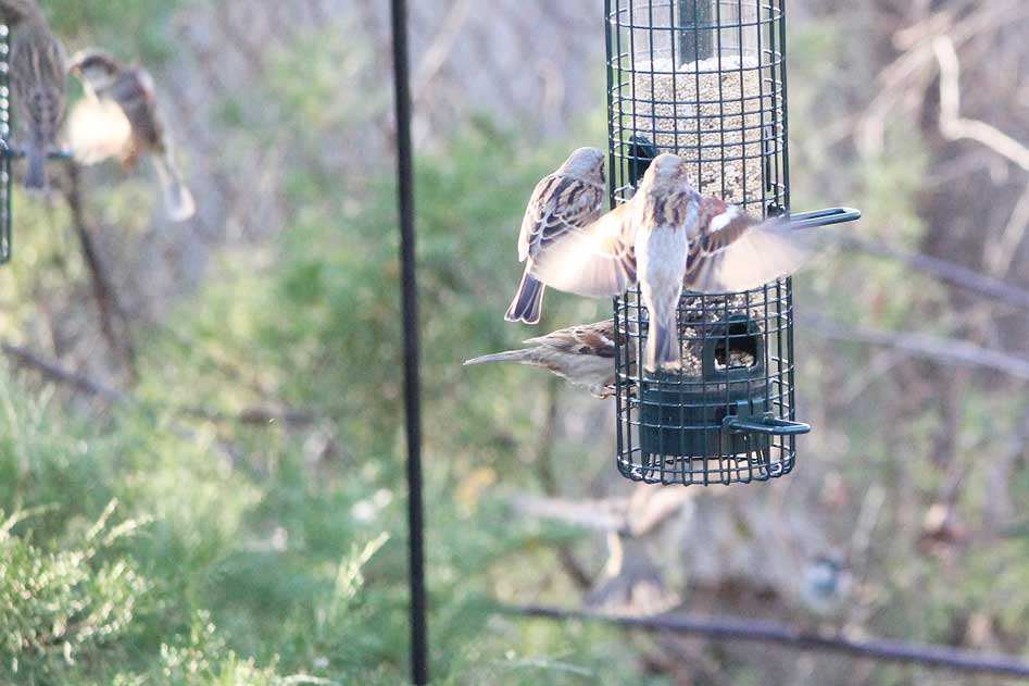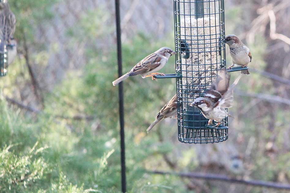 The house sparrows never stop.