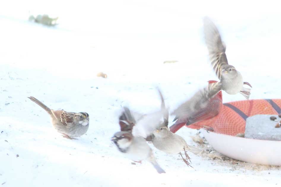 From a distance, we kept thinking we were seeing a different species of cardinal. Their dark backs seemed much darker in