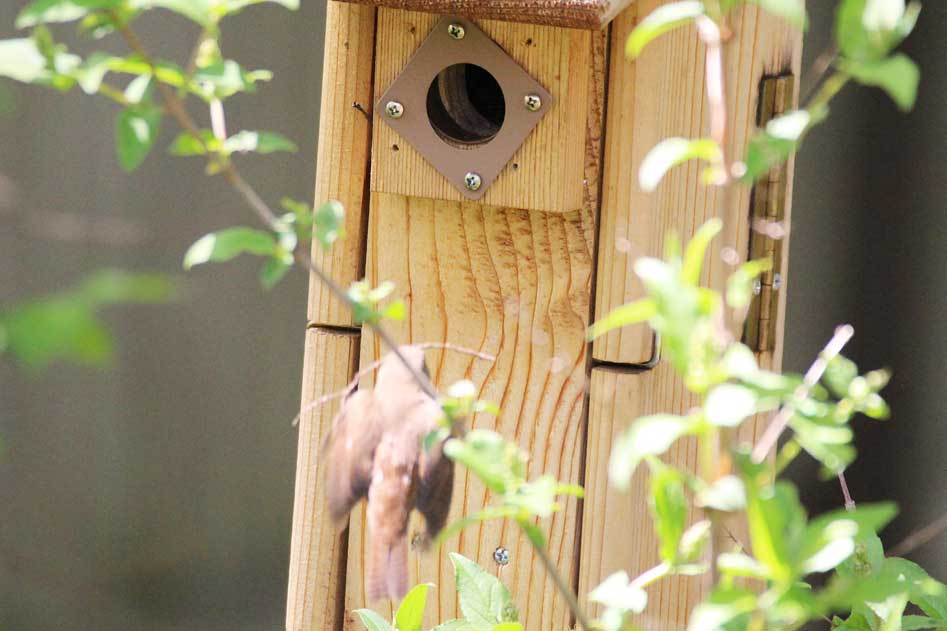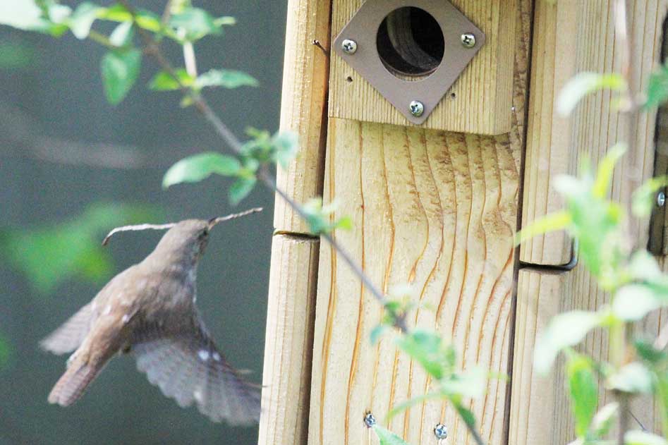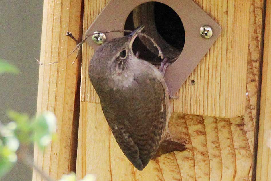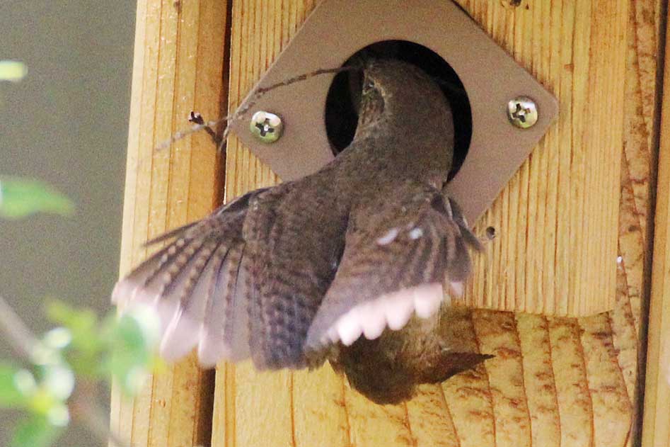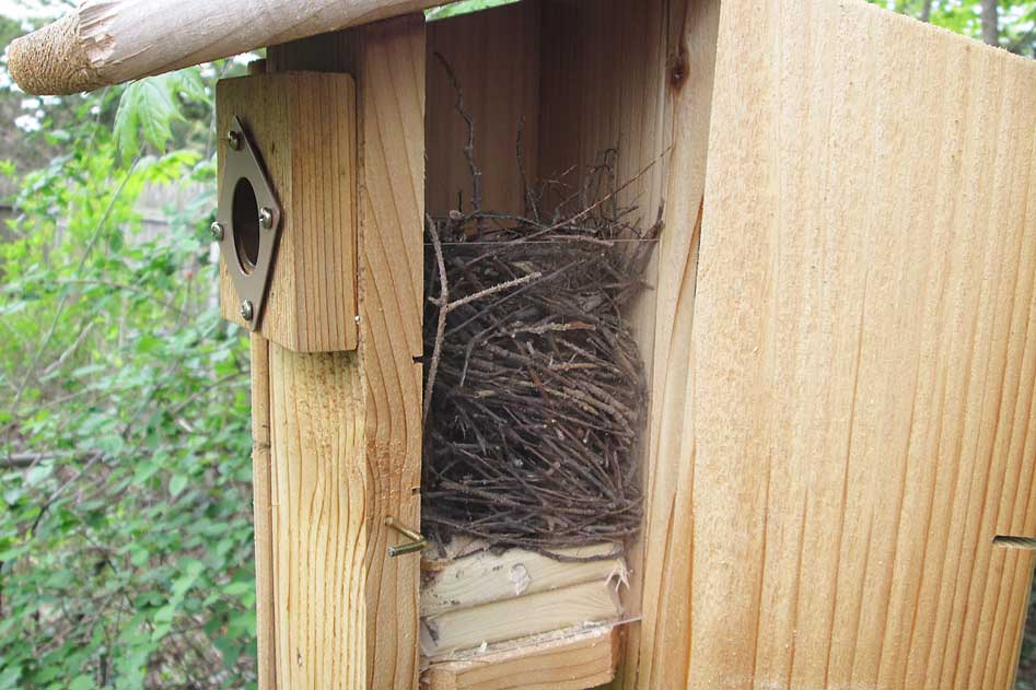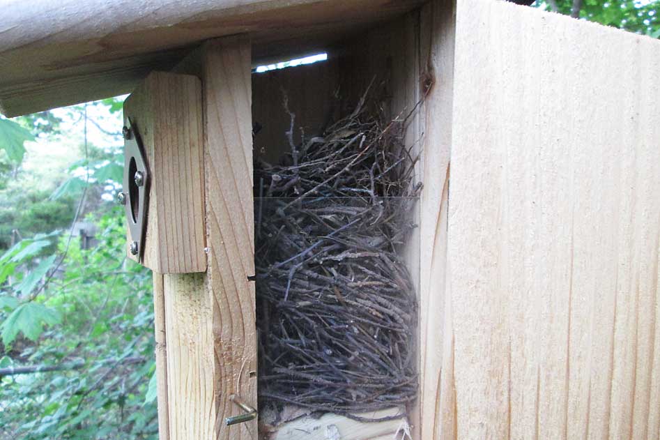 When this nest box began to be filled with twigs, little did we suspect
