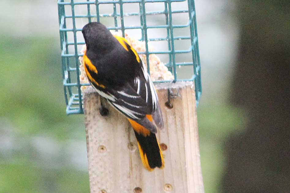 30 April 2017 Bird number 41 - Baltimore Oriole. Two arrived; one was more yellow, one was more orange.