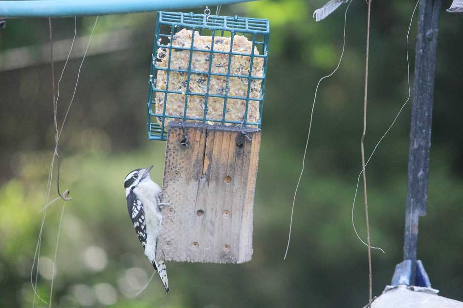 It was very, very quiet in the backyard. This little downy woodpecker did its best impersonation of a woodpecker statue. Only its eyes blinked. What was up?