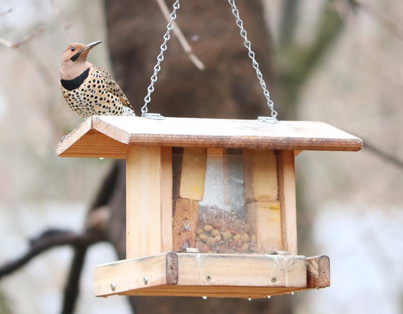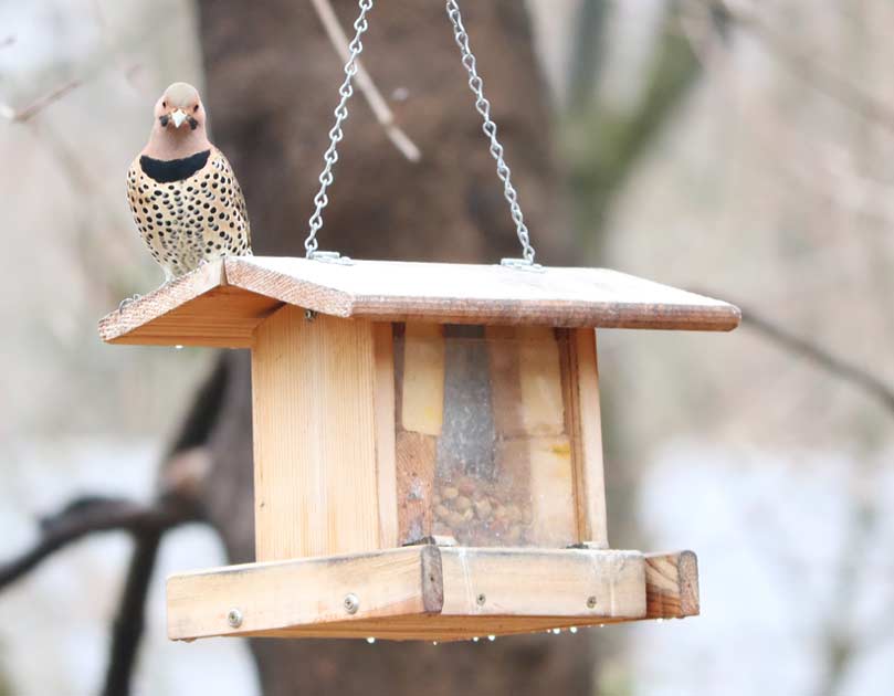 Northern flicker is back for more. The bird spent a long time on the suet feeder.